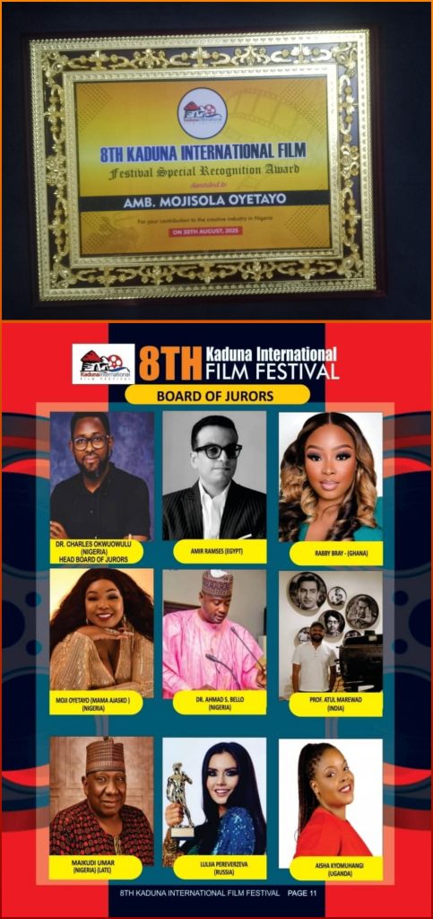 Ambassador Dr. Moji Oyetayo, celebrated Nollywood actress and cultural ambassador, has extended warm felicitations to the Founder of the Kaduna International Film Festival (KADIFF), Mr. Isreal Audu Kashim, on the successful hosting of the 2025 edition.