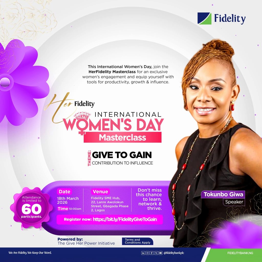 In commemoration of International Women’s Day 2026, Fidelity Bank Plc has announced a series of masterclasses and support initiatives designed to help women build practical, income generating skills, strengthen professional visibility, and accelerate career growth throughout March 2026.